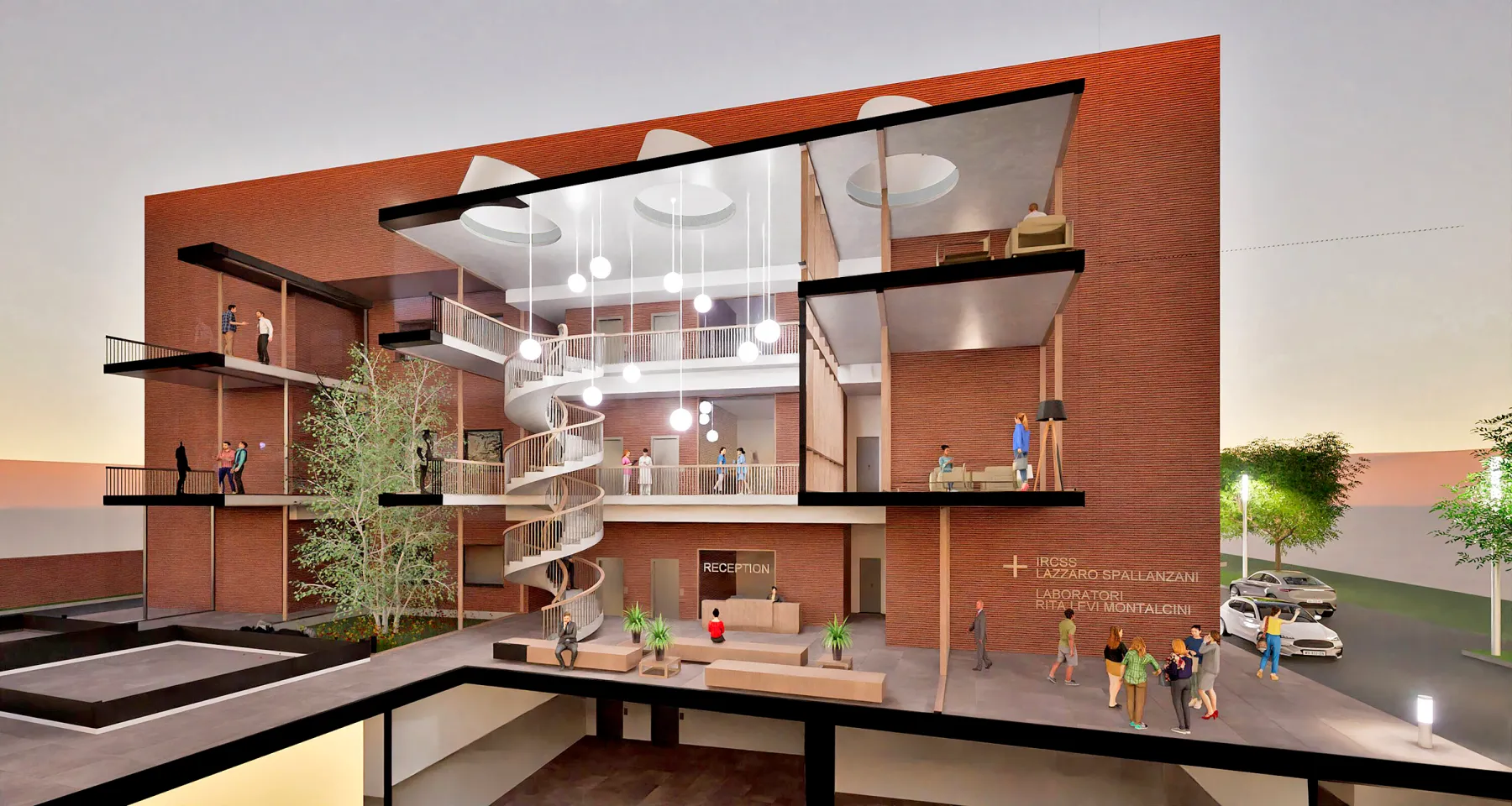 The project is designed to ensure maximum flexibility and adaptability over time, essential characteristics for a building dedicated to scientific research and healthcare services. The spaces are organized rationally and efficiently, with separate routes for staff, materials, and visitors to ensure hygiene, safety, and privacy.