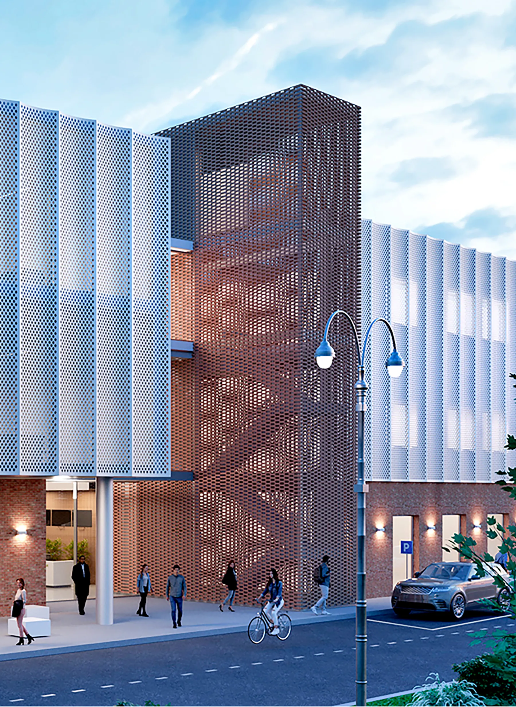 The building is based on a modular configuration, composed of repeatable and integrable units that allow for both horizontal and vertical expansion. The division into three distinct blocks reduces the visual impact of the single-unit complex while maintaining functional continuity. The vertical constraints (staircases and light wells) are located between the blocks and clad in Corten steel, becoming distinctive architectural elements.